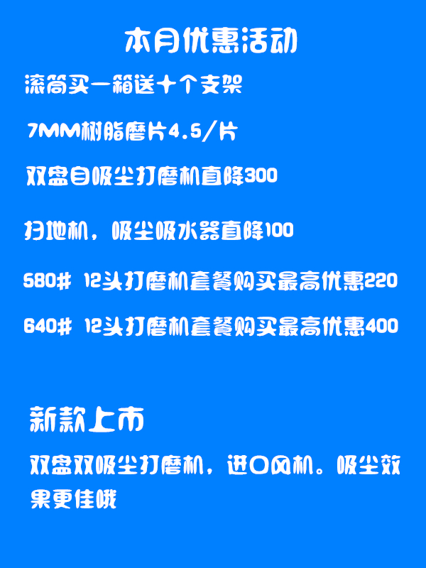 本機使用電機3kw,每個班可打磨毛地2000平方米,可研磨中涂4000平方米。