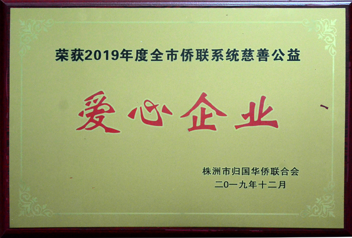 集團公司榮獲“株洲市2019年度僑聯系統慈善公益愛心企業”稱號